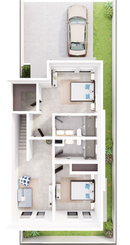 Main AreaGround floor Net 59 sqm First floor Net 62 sqm Total Net Building 121 sqm Additional AreaCar parking 38 sqm Private backyard varies Family area Kitchen Living room Dining area Master Bedroom Master bathroom 2 Bedrooms 2 Bathrooms Ground floor First Floor Early Buyer RegistrationFill out the form and we’ll get in touch with you as soon as possible. Use Primary HomeRental/Investment PropertyGift Payment Type MortgageSelf-Finance Date of Purchase